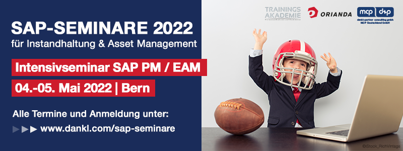 24 Jan. Header_Seminar_SAP_PM_EAM_Mai_2022 Posted at 11:30h in by Agnieszka Jonczy (MFA-Administrator) Intensivseminar SAP PM/EAM Print page